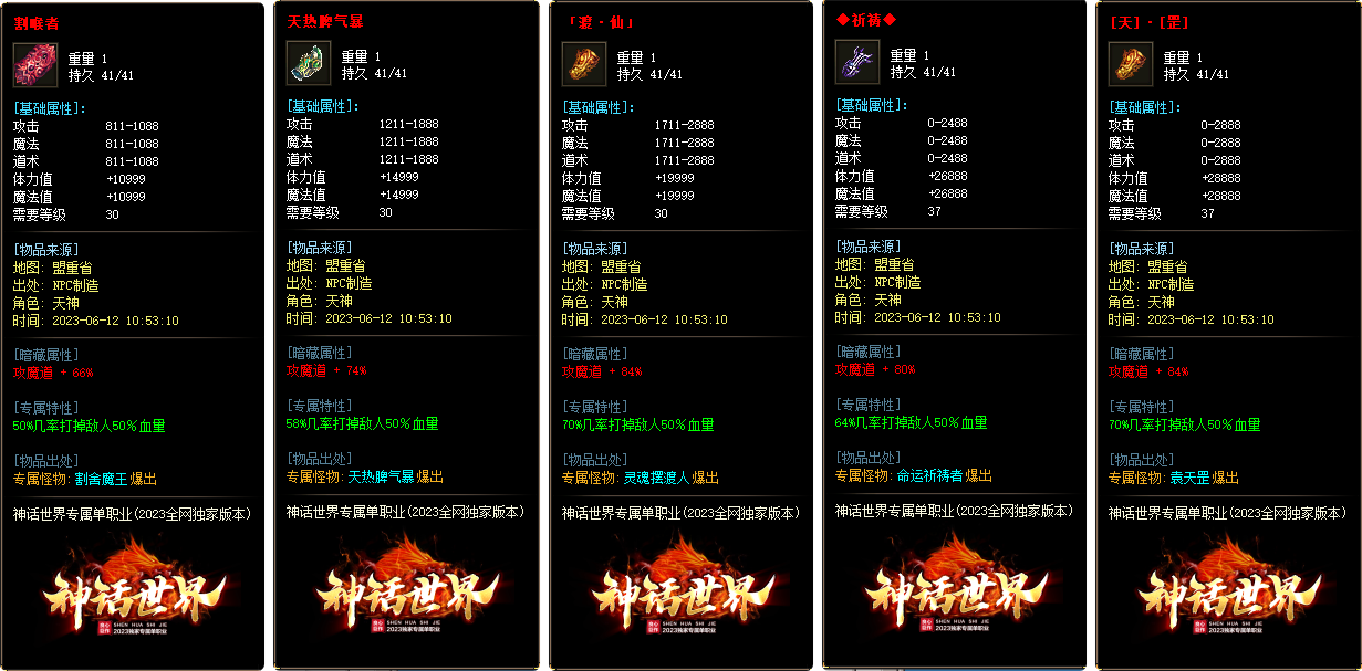 - ▶【神话世界】:本服属性平衡,不变态,材料等货币游戏自由交易 根据市场情况 玩家自行定价!!