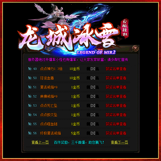每日几万广告保证人气,单区限时奖励100多种,首杀BOSS奖励100多个,人人都能打到奖励。