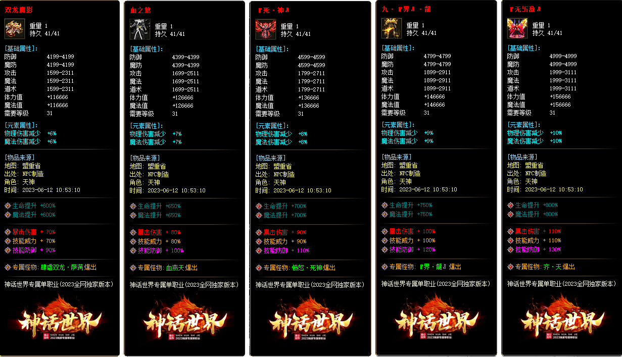 - ▶【神话世界】:本服属性平衡,不变态,材料等货币游戏自由交易 根据市场情况 玩家自行定价!!